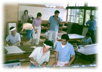| 山表連事業 一、組合としての事業管理 一、技能検定試験(表具・壁装・床) 一、後継者の育成 山口県表具内装高等職業訓練校(法人) 卒業者156人 昭和48年〜現在まで続く 一、技術の伝承・成人訓練・技能士会 一、県住フスマ(県予)襖友会(昭51年〜現在続く) |