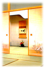 | 和ふすまは、間仕切りとしての機能だけでなく、室内の湿度が高くなれば湿気を吸収し、低くなれば放出するという、いわば湿度調整機能もあります。生活の知恵から生まれた、日本の風土に最適な建具です。 |